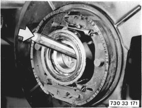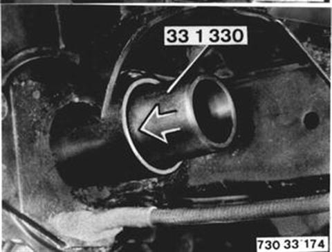Radlager und Wellendichtring außen mit Hülse 33 1 330 austreiben. Sitzflächen der Radlager auf Gleitspuren in der Nabe überprüfen. |  |