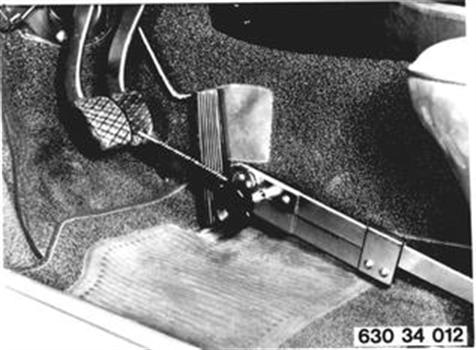 Mit dem Bremsfußhebel im Bremssystem einen Druck¹) erzeugen und mit Pedalstütze Bremsfußhebel blockieren. Nach 1 Minute darf der Druck max. 10 % absinken. Am 2. Bremskreis (B) Prüfung analog durchführen. Achtung! Die Hockdruckdichtheitskontrolle muß einmal ohne und einmal mit laufendem Motor durchgeführt werden.  ¹) Siehe technische Daten |  |
