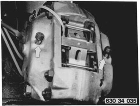 Einbauhinweis: Bei Einbau der Festsattel unbedingt darauf achten, daß der linke Festsattel nicht mit dem rechten verwechselt wird. Die Entlüfterventile müssen nach oben stehen.
