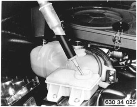 Ausgleichbehälter abziehen. Einbauhinweis: Dichtgummi prüfen. |  |