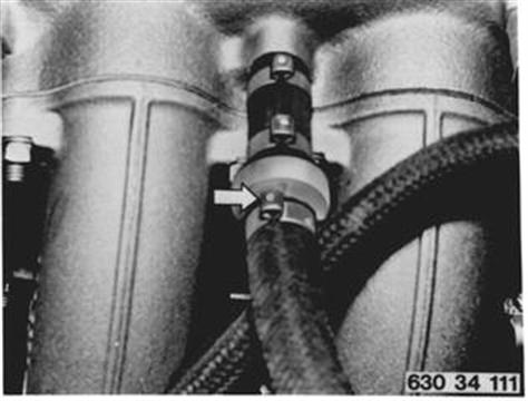 b) Einspritz-Motor Unterdruckschlauch am Rückschlagventil lösen. Einbauhinweis: Klemmschelle erneuern.