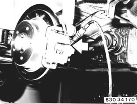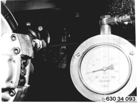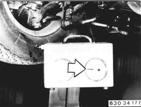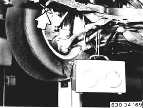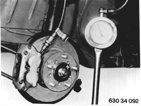 Fahrzeuge nach Modellwechsel 1982  BREMSKRAFTREGLER AUF FUNKTION PRÜFEN (Nicht bei M 635 CSi) Hinterräder abbauen 36 10 320. Ein Hochdruckmanometer am 1. Bremskreis vorne rechts anschließen. Hochdruckmanometer entlüften.  Siehe technische Daten |  |