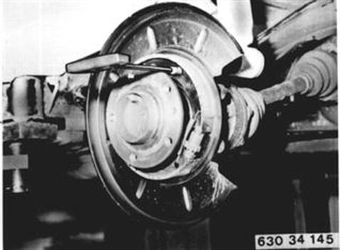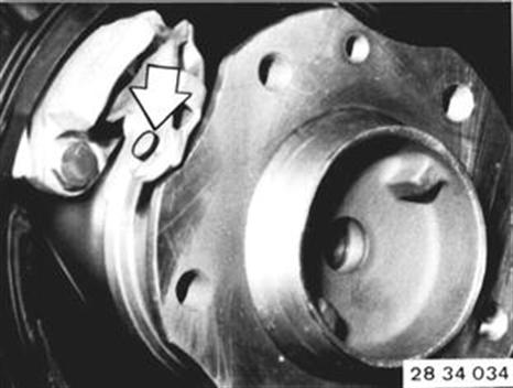 Fahrzeuge nach Modellwechsel 1982  HANDBREMSBACKEN AUS- UND EINBAUEN Bremsscheibe hinten aus- und einbauen 34 21 320. Obere Rückzugfeder mit Bremsfederzange aushängen.  34 21 320 |  |