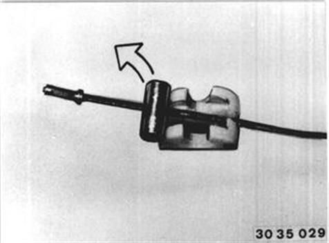 Bowdenzug am Widerlager herausdrücken. Gummitülle (2) herausdrücken. |  |