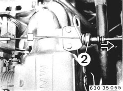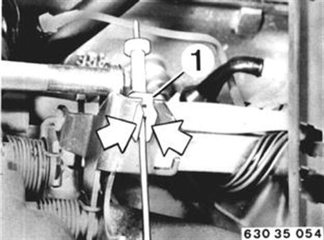 Fahrzeuge nach Modellwechsel 1982  BOWDENZUG FÜR GASBETÄTIGUNG ERSETZEN/EINSTELLEN Klemmstück (1) durchdrücken und aushängen. |  |