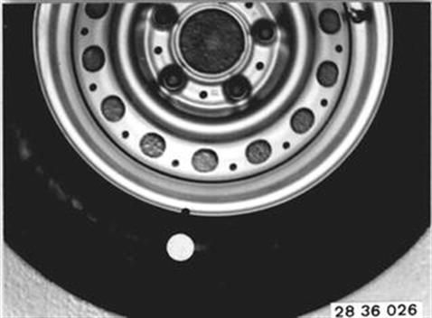 Sollte der Reifen nicht richtig auf der Felge sitzen, ist eine Fülldruckerhöhung zur Verbesserung des Reifensitzes nutzlos! Es sind dann beide Reifenwülste abzudrücken und nach nochmaliger Anwendung von Gleitmitteln ist der Reifen erneut aufzupumpen. Freigegebene Reifen, Reifengrößen und Scheibenräder, sowie Sonderausstattung siehe SI Gruppe 36. | ![]() |