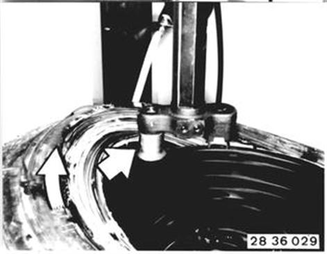 Fahrzeuge nach Modellwechsel 1982 VORDER- ODER HINTERRAD AUF SEITEN- UND HÖHENSCHLAG PRÜFEN - Rad abgebaut - Rad abbauen, siehe Pos. 36 10 300. Rad auf Wuchtmaschine montieren. Um Umspannung zu vermeiden, ist es notwendig, das Rad so an der Wuchtmaschine zu montieren wie es auch am Fahrzeug montiert wird (Ventilstellung nach unten). 36 10 300