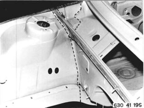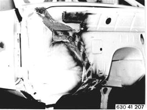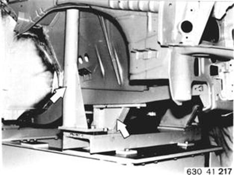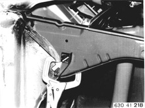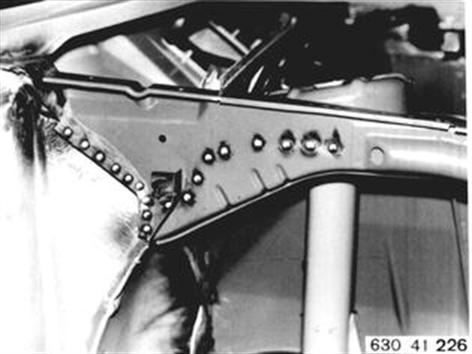 Motorträger und Radhäuser an Bodenblech undStirnwand Schutzgaslochschweißen.