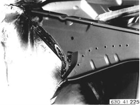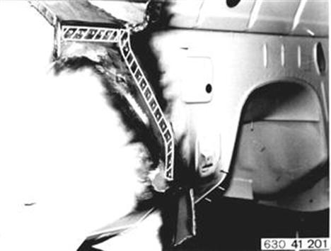 Stehengebliebenen Motorträger vorbereiten.Seitlich im Bereich des Verstärkungsblechs