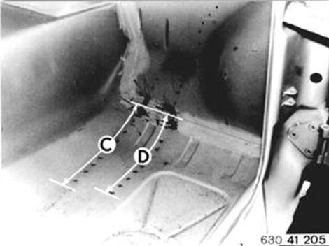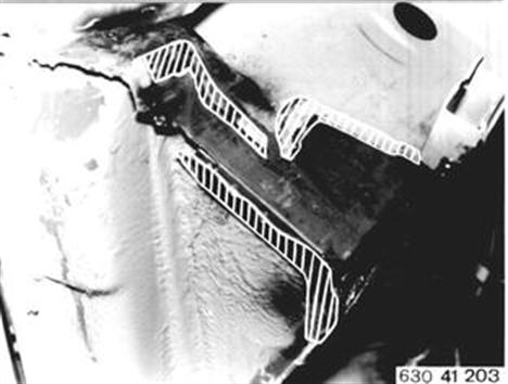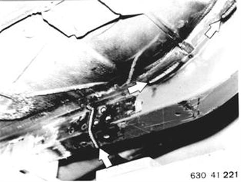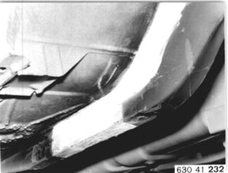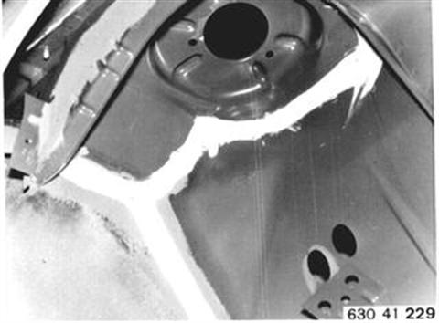 Trennfuge Motorträger- Bodenblech mit Fugendichtungsmasse bestreichen.