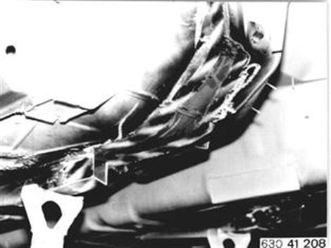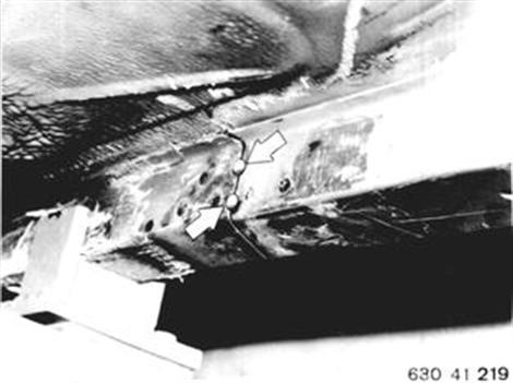Trennfuge Motorträger - Bodenblech mit Fugendichtungsmasse bestreichen.