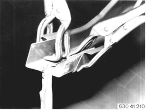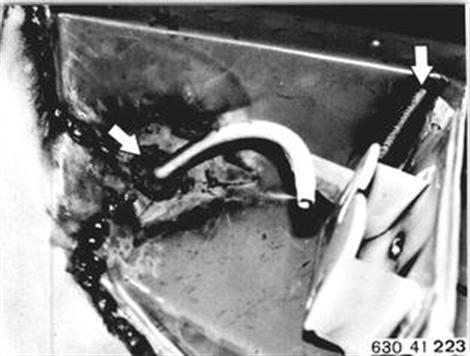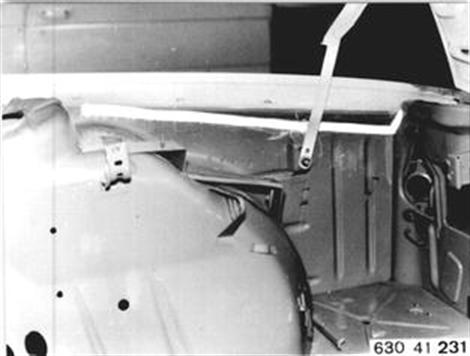 Führungsrohr für Frontklappenzug hartlöten.Trennwand-Heizung an Radhäuser Schutzgasschweißen.