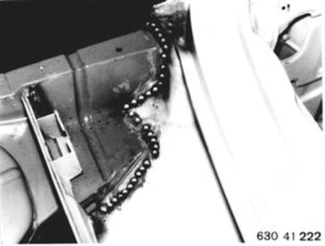 Motorträger und Radhäuser an Bodenblech und Stirnwand Schutzgaslochschweißen.
