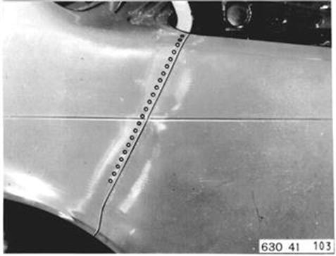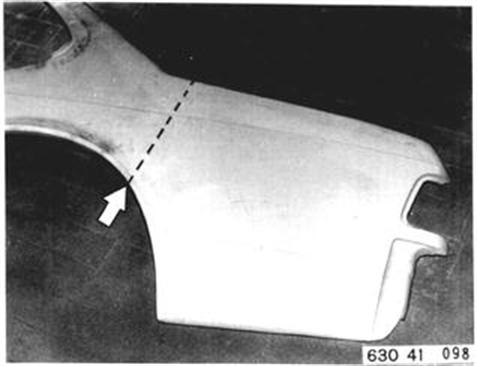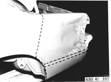 Seitenwand an Linie abtrennen Hinweis: Trennstelle so festlegen, daß der Ausbau der Heckscheibe - auch zum Beilackieren nicht notwendig wird.