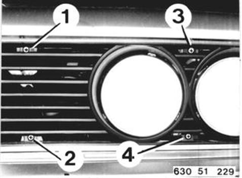 FRONTZIERGITTER-SEITLICH AUS- UND EINBAUEN Blinkleuchte vorne kpl. aus- und einbauen 63 13 150. Schrauben (1 ... 4) lösen und Frontziergitter seitlich abnehmen. 63 13 150