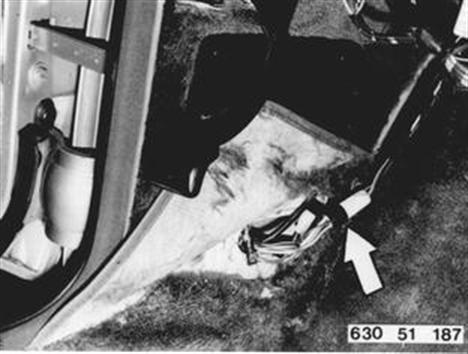 Beifahrerseite Holmverkleidung und Bodenteppich teilweise lösen. Ausschnitt abtasten und Acellafolie durchstoßen. Einbauhinweis: Ausschnitt wieder mit Acellafolie abdecken. | ![]() |