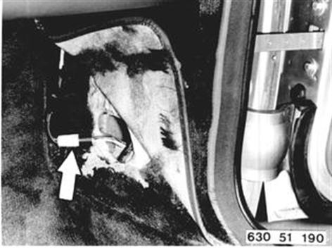 RÜCKSPIEGEL AN TÜR RECHTS ANBAUEN Ab Modell 9./77: Alle Arbeiten sind am Linkslenker-Modell dargestellt. Beim Rechtslenker-Modell müssen die Arbeiten spiegelbildlich durchgeführt werden. Minusleitung an der Batterie abklemmen, Verkleidung für Instrumententafel unten links ab- und anbauen 51 45 180. 51 45 180