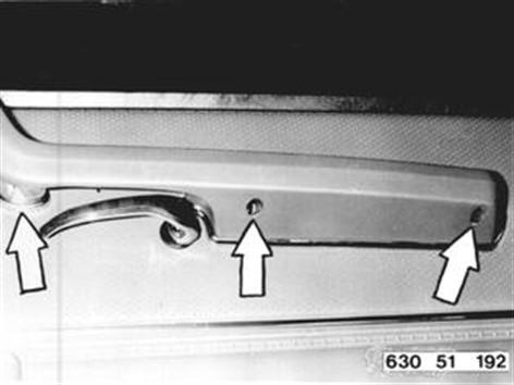 Abdeckung von Türinnengriff ausheben. Schraube lösen und Türinnengriff mit Rosette abnehmen. Einbauhinweis: Türinnengriff zeigt nach vorne. | ![]() |
