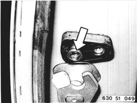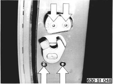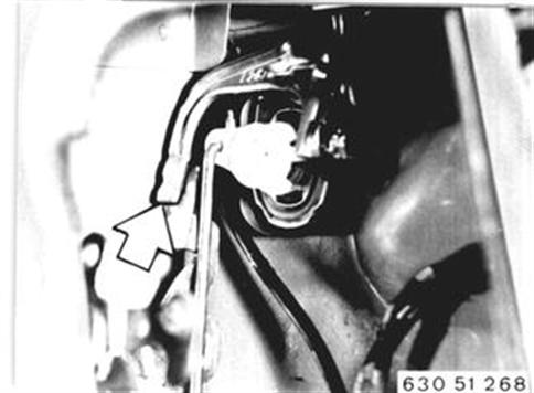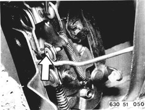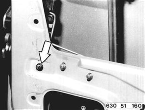 Fahrzeuge nach Modellwechsel 1982 TÜRSCHLOSS DER VORDERTÜR AUS- UND EINBAUEN Türverkleidung ab- und anbauen 51 41 000. Acella-Folie, soweit erforderlich, abziehen. Schloßferntätigung abschrauben und aushängen. Einbauhinweis: Schloßfernbetätigung leicht vorspannen. 51 41 000