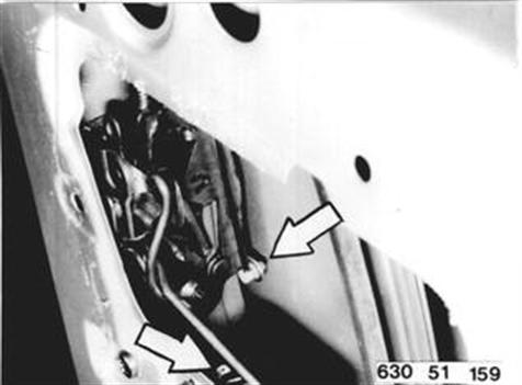Verbindungsstange für Fernbetätigung aus Clip aushängen und Schloß herausnehmen. Einbauhinweis: Darauf achten, daß die Verbindungsstange beim Einführen zwischen Fensterheber und Türinnenblech zu liegen kommt. | ![]() |