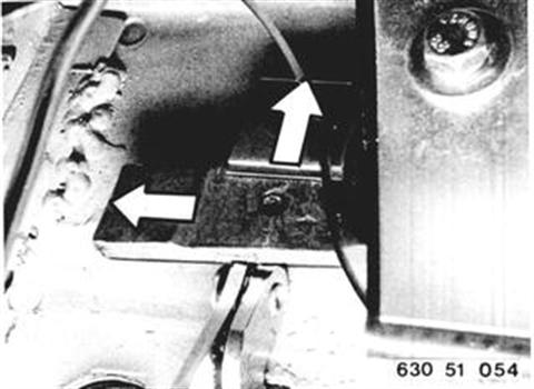 Fahrzeuge nach Modellwechsel 1982  AUSSENSPIEGEL DER VORDERTÜR AUS- UND EINBAUEN Minusleitung von der Batterie abklemmen. Schließzylinder kompl. aus- und einbauen 51 21 140. Clip für Ausgleichsgewicht abnehmen. Ausgleichsgewicht nach hinten aus vorderer Halterung herausziehen.  51 21 140 |  |