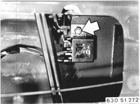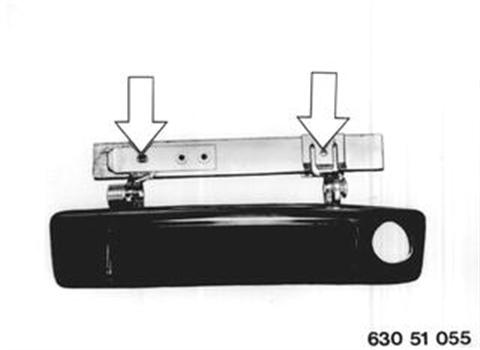 Mutter lösen und Türaußengriff abnehmen. Einbauhinweis: Beim Betätigen des Außengriffs muß der Schalter betätigt werden. Ggf. Kontakt nachbiegen. |  |