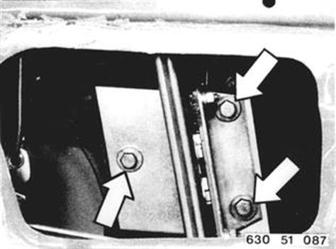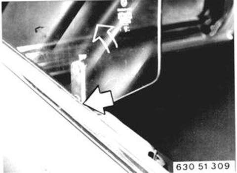 Fahrzeuge nach Modellwechsel 1982 TÜRFENSTERSCHEIBE VORNE AUS- UND EINBAUEN Türverkleidung ab- und anbauen 51 41 000. Brustleiste an Vordertür ab- und anbauen 51 41 300. Schrauben lösen und Abdeckleiste abnehmen. Fensterschachtabdichtung innen ausheben. 51 41 000 Siehe technische Daten