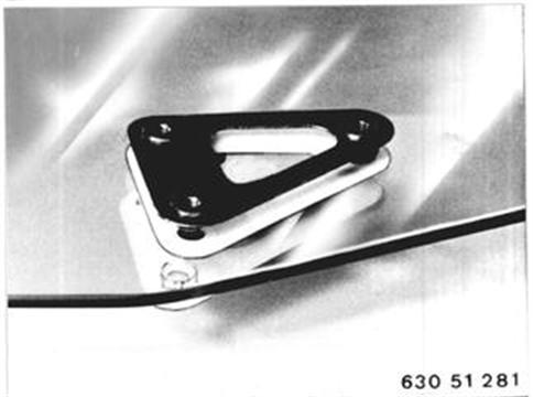 Gleitschiene für Kurbelapparat von der Türfensterscheibe lösen. Türfensterscheibe nach oben abnehmen. Einbauhinweis: Beide Fensterführungsschienen so einstellen, daß Türfensterscheibe leicht gängig ist und im geschlossenen Zustand am Türgummi gut anliegt. | ![]() |