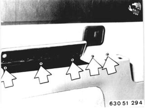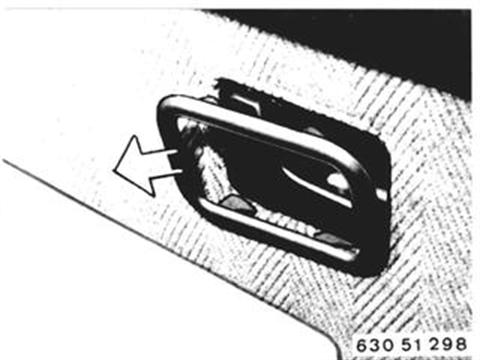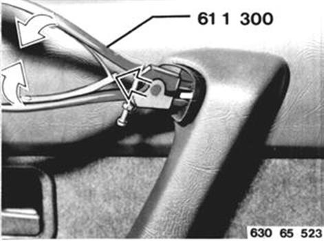 Fahrzeuge nach Modellwechsel 1982 TÜRVERKLEIDUNG VORNE AB- UND ANBAUEN Außenspiegeleinstellknopf abziehen. Spiegelschalter mit BMW-Spezialwerkzeug 61 1 300 ausheben. Stecker abziehen. | ![]() |