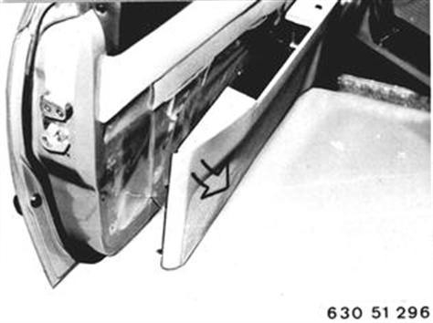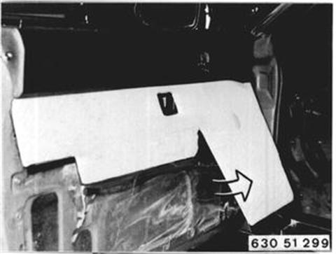 Achtung! Die Verkleidung ist vorn mit einer Haltenase gehalten. Verkleidung zur Fahrzeugmitte schwenken und aushängen. | ![]() |