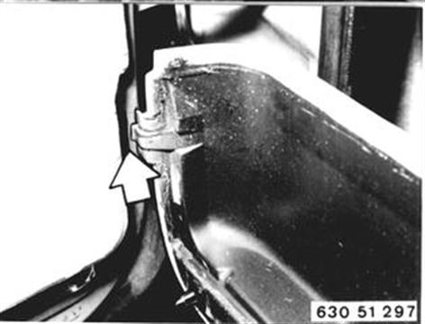 Türverkleidung abnehmen. Einbauhinweis: Schadhafte Klammern oder Büchsen ersetzen. Feder mit großer Windung zur Verkleidung. | ![]() |