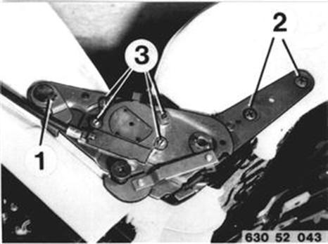 Mit elektrischer Sitzverstellung: Seegeringe (1) ausheben und Schrauben (2) lösen. Schrauben (3) lösen und Getriebedeckel abnehmen. |  |