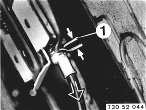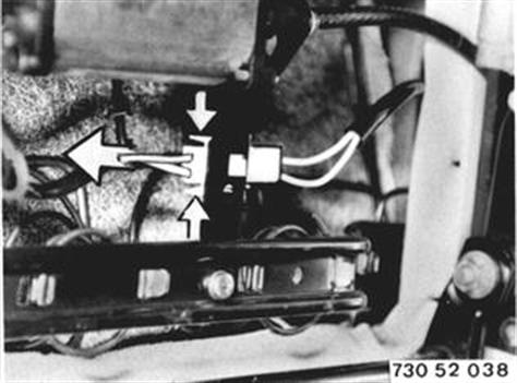Fahrzeuge nach Modellwechsel 1982 STELLANTRIEB UND GETRIEBE FÜR KOPFSTÜTZENVERSTELLUNG AUS- UND EINBAUEN/ERSETZEN - Vordersitz ausgebaut - Haltelaschen zusammendrücken und Steckverbindung trennen.
