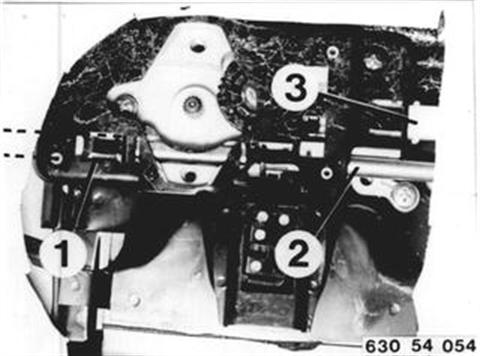 Führungsrohre (1 u. 2) ausklinken. Zentralstecker (3) abziehen. Einbauhinweis: Auf richtigen Sitz der Führungsrohre achten. |  |