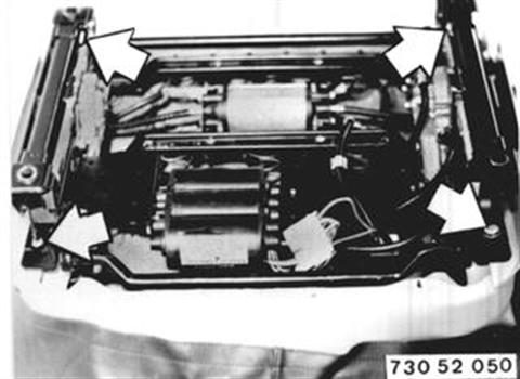 Fahrzeuge nach Modellwechsel 1982 Vordersitz aus- und einbauen 52 10 000. Schrauben lösen, Steckverbindung trennen, Sitzschienen abnehmen. 52 10 000