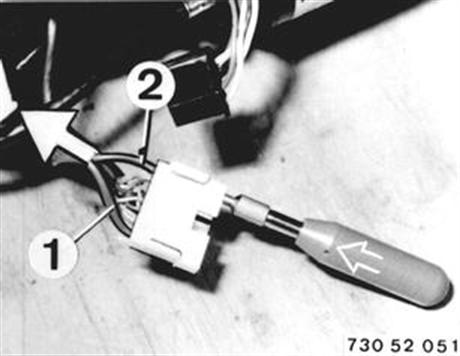 Mit Ausziehwerkzeug **) Kabel (1 u. 2) aus Steck- gehäuse ziehen. Einbauhinweis: Kabel (1) braun, Kammer-Nr. 13 Kabel (2) rot, Kammer Nr. 7 Haltelaschen der Stecker leicht aufbiegen. **) Bezugsnachweis HWB | ![]() |
