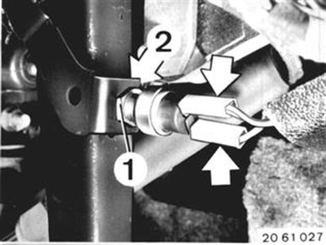 Fahrzeuge nach Modellwechsel 1982 BREMSLICHTSCHALTER ERSETZEN Verkleidung der Instrumententafel unten links ab- und anbauen 51 45 180. Steckverbindung trennen. Kontermutter (1) vom Bremslichtschalter lockern. Mutter 82) lösen und Schalter herausnehmen. Einbauhinweis: Bremslichtschalter einstellen 61 31 304. 51 45 180 61 31 304