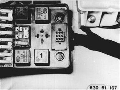 ENTLASCHUNGS-RELAIS ERSETZEN Minusleitung an der Batterie abklemmen. Relais (1) aus Geräteträger ausheben. Einbauhinweis: Fabrikat¹) und Nr.¹) beachten. ¹) Siehe technische Daten