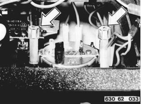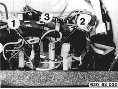 ZEITUHR AUS- UND EINBAUEN Heizbetätigung kpl. aus- und einbauen 64 11 330. Massekabel (1), Pluskabel (2) und Kabel (3) für Beleuchtung von Zeituhr abziehen. 64 11 330