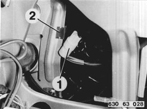 Steckverbindung (1) trennen. Kabel aus Halteclips (2) ausheben.