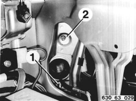 Muttern (1 ... 2) lösen und Blinkleuchte kpl. nach vorne abnehmen.