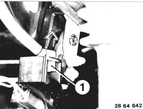 Halteklammer (1) ausheben. Bowdenzug aushängen. |  |