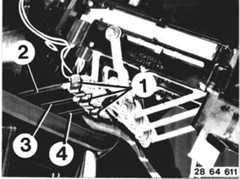 Klammern (1) ausheben und Bowdenzug (2...4)  aushängen. Heizungsbetätigung abnehmen. Einbauhinweis: Bowdenzug 2 roter Farbring Bowdenzug 3 blauer Farbring Bowdenzug 4 grüner Farbring |  |