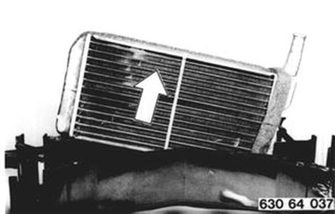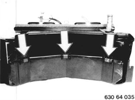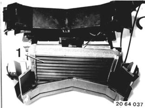 Kabeltülle herausdrücken und Kabel zwischen den Heizkörperrohren herausziehen. Heizkörper herausnehmen. Einbauhinweis: Neuen Schaumgummidichtrahmen mit geeignetem Kleber am Heizkörper ankleben.