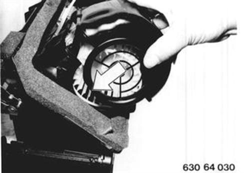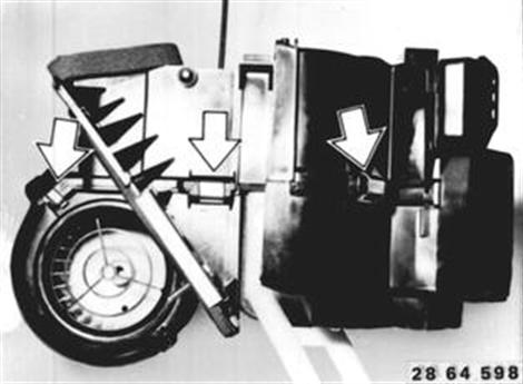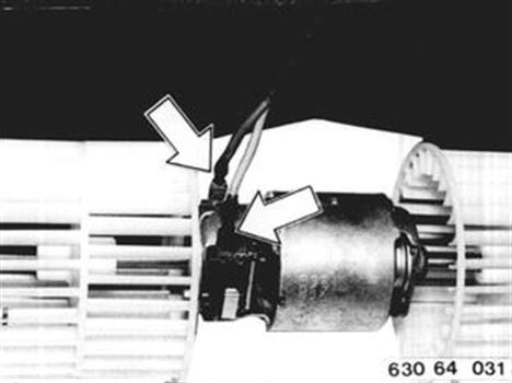 Spannverschluß öffnen. Kabelanschlüsse trennen und Gebläsemotor herausheben. Einbauhinweis: Motor verdrehen, bis Arretierung einrastet.