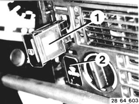 Fahrzeuge nach Modellwechsel 1982 STEUERGERÄT FÜR HEIZUNGSREGELUNG ERSETZEN Blende (1) mit einem kleinen Schraubendreher ausheben.