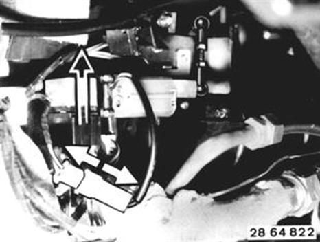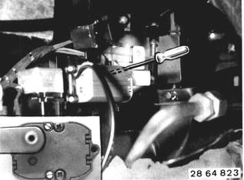 Stellmotor in gezeigte Stellung fahren (Frischluftklappe halb geöffnet). Steckverbindung lösen. Relais mit Sockel abnehmen. Gestänge von Motor lösen. |  |