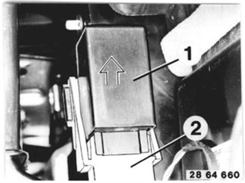 Fahrzeuge nach Modellwechsel 1982 VERDAMPFERTEMPERATURREGLER ERSETZEN Schrauben 1...4 lösen. Verkleidung in den Fußraum legen.