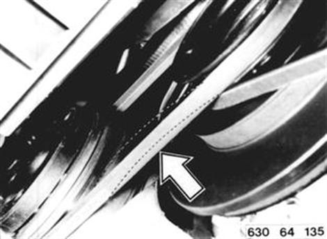 Schraube an Spannlasche oben lockern. Keilriemen entspannen und abnehmen. | ![]() |