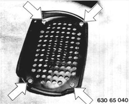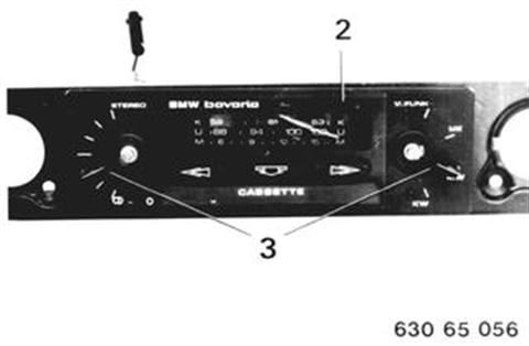 Abdeckblende (1) für Radio ausheben. Links und rechts Schrauben lösen. Trägerblech für Radio abnehmen. |  |